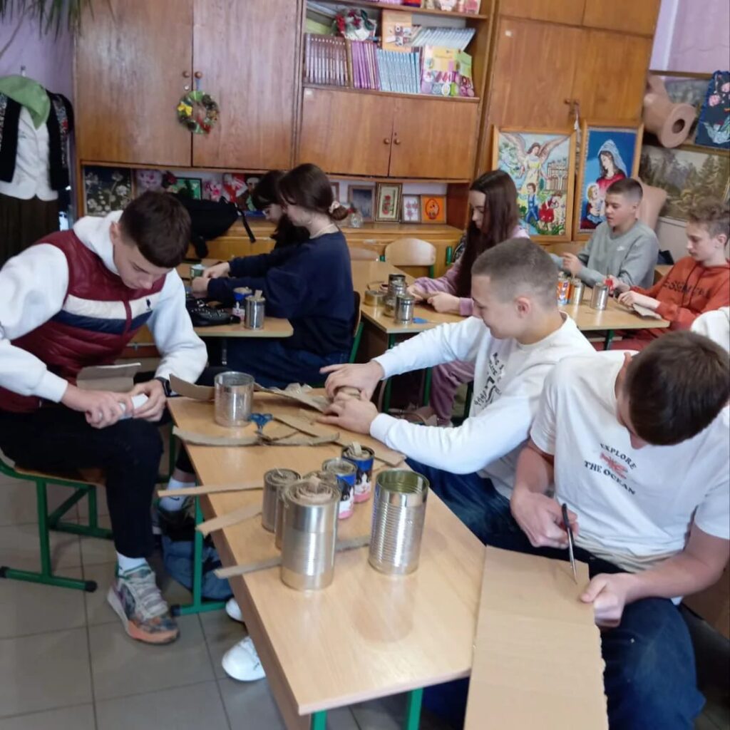 Учні 9-А класу разом з вчителем Коцур Т.О. долучилися до волонтерської діяльності. Спільними зусиллями виготовлення окопні свічки для воїнів ЗСУ.