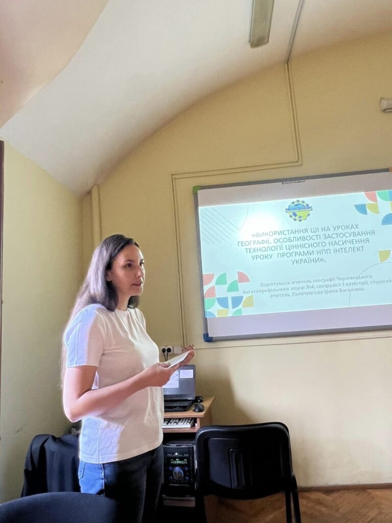 9 травня 2024 року проведено бінарне заняття для здобувачів освіти 2 та 3 курсів спеціальності 014.07 Середня освіта на тему «Використання ШІ на уроках географії. Особливості застосування технології ціннісного насичення уроку програми НПП Інтелект України". Лектором виступила вчитель географії Чернівецького багатопрофільного ліцею 4,